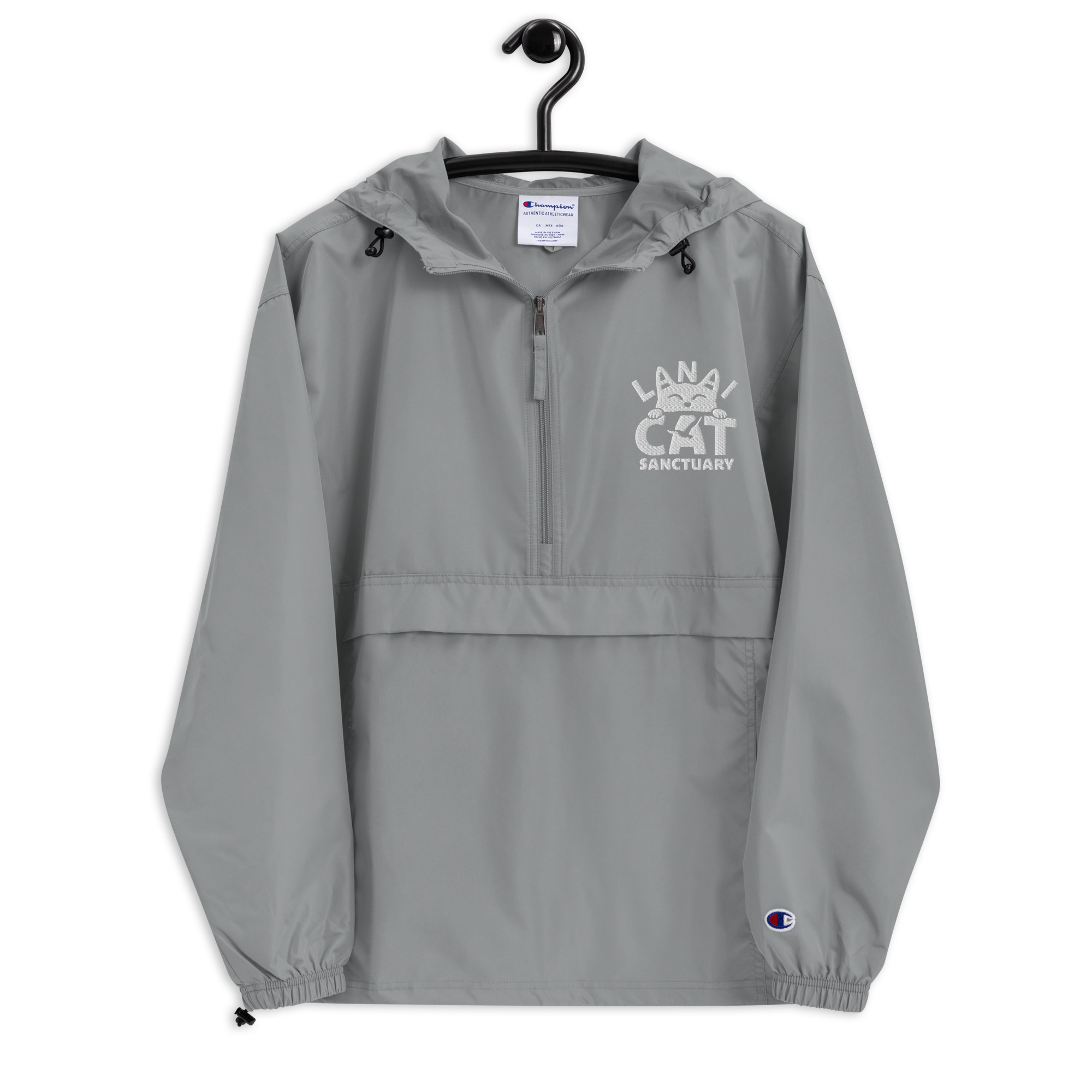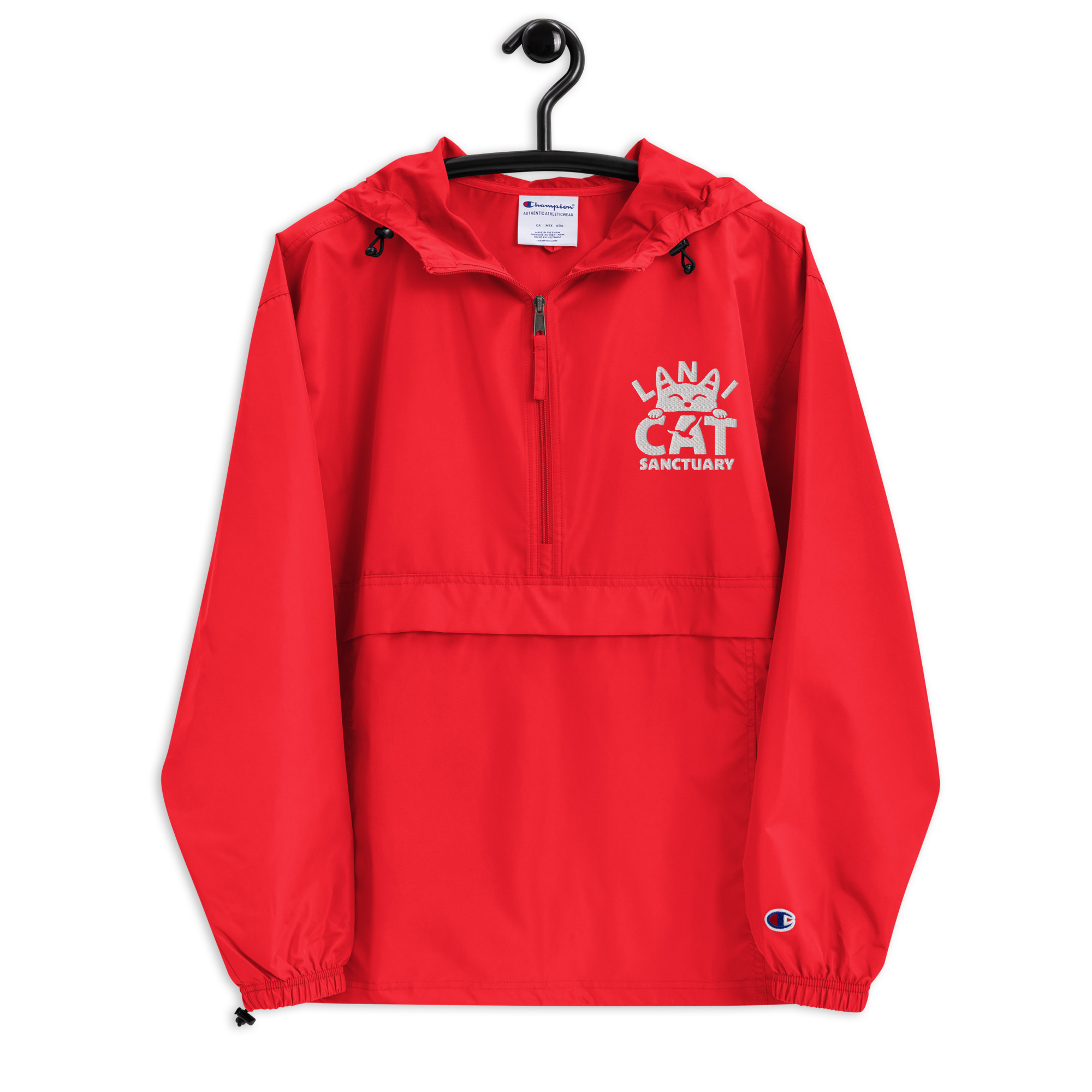 Protect yourself from the elements with this Champion packable jacket. This wind and rain resistant polyester jacket with a detailed embroidery design has a practical hood, front kangaroo pocket, and zipped pouch pocket which you can pull out and use to scrunch the jacket into for convenient storage.