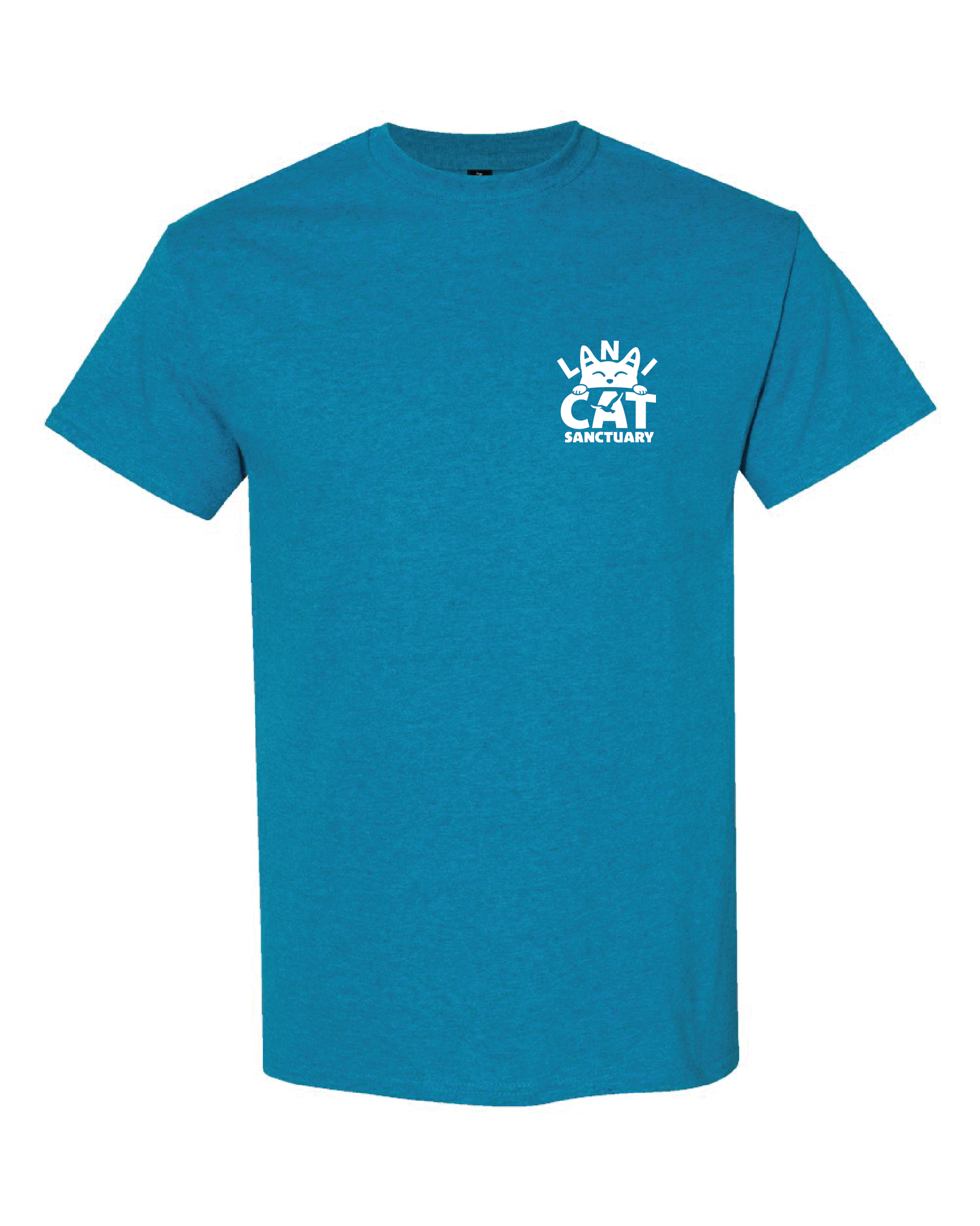Bold, fun, and full of aloha. This Men’s Sapphire “Purradise” T-Shirt features the Lanai Cat Sanctuary logo on the front and a vibrant island cat design on the back. Made from soft, durable cotton for everyday comfort. Every purchase supports rescued cats.